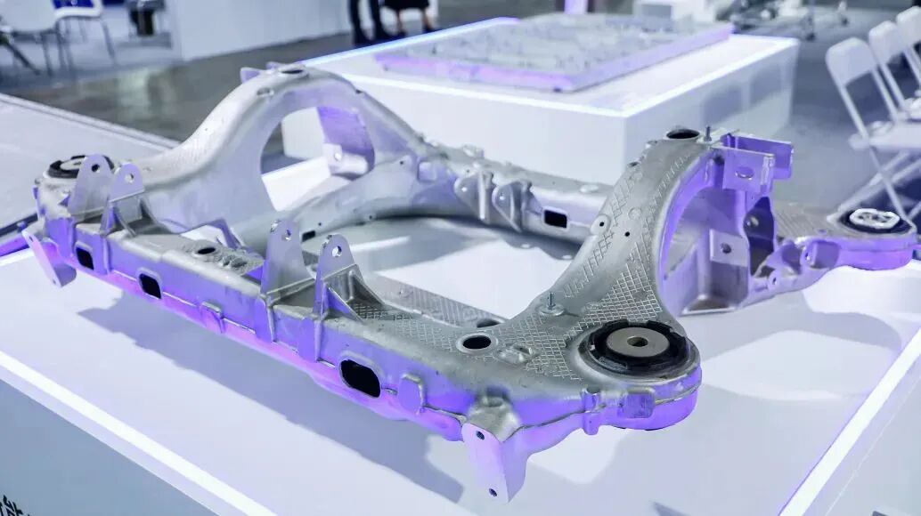 低压铸造是一种通过低压将熔融金属注入模具的工艺,适用于生产复杂薄壁铸件,具有高精度、低气孔率等优点。目前,低压铸造工艺在汽车上的应用主要集中在电机壳体、副车架、发动机缸体、轮毂、转向节、控制臂、电池壳体等。