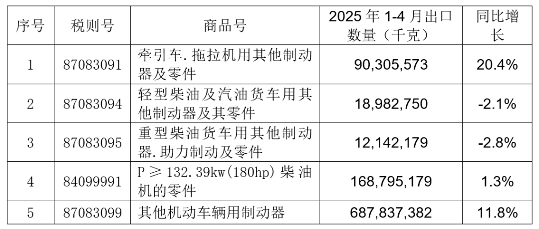 表 8:2025年1-4月汽车零部件对美国出口情况